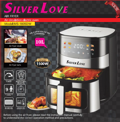 Stop heating up your whole kitchen with oil splatters. Order the SILVER LOVE 1500W 10L Air Fryer (MS-1805DW) today and start cooking healthier, faster, and smarter for your entire family.
