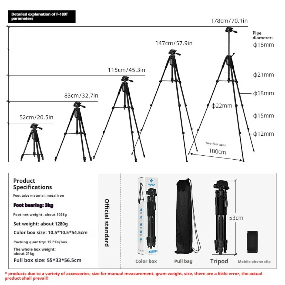 Impressive 1.7m Height: Extends up to 1.7 meters, providing the perfect elevation for portraits, landscapes, and professional studio shots.