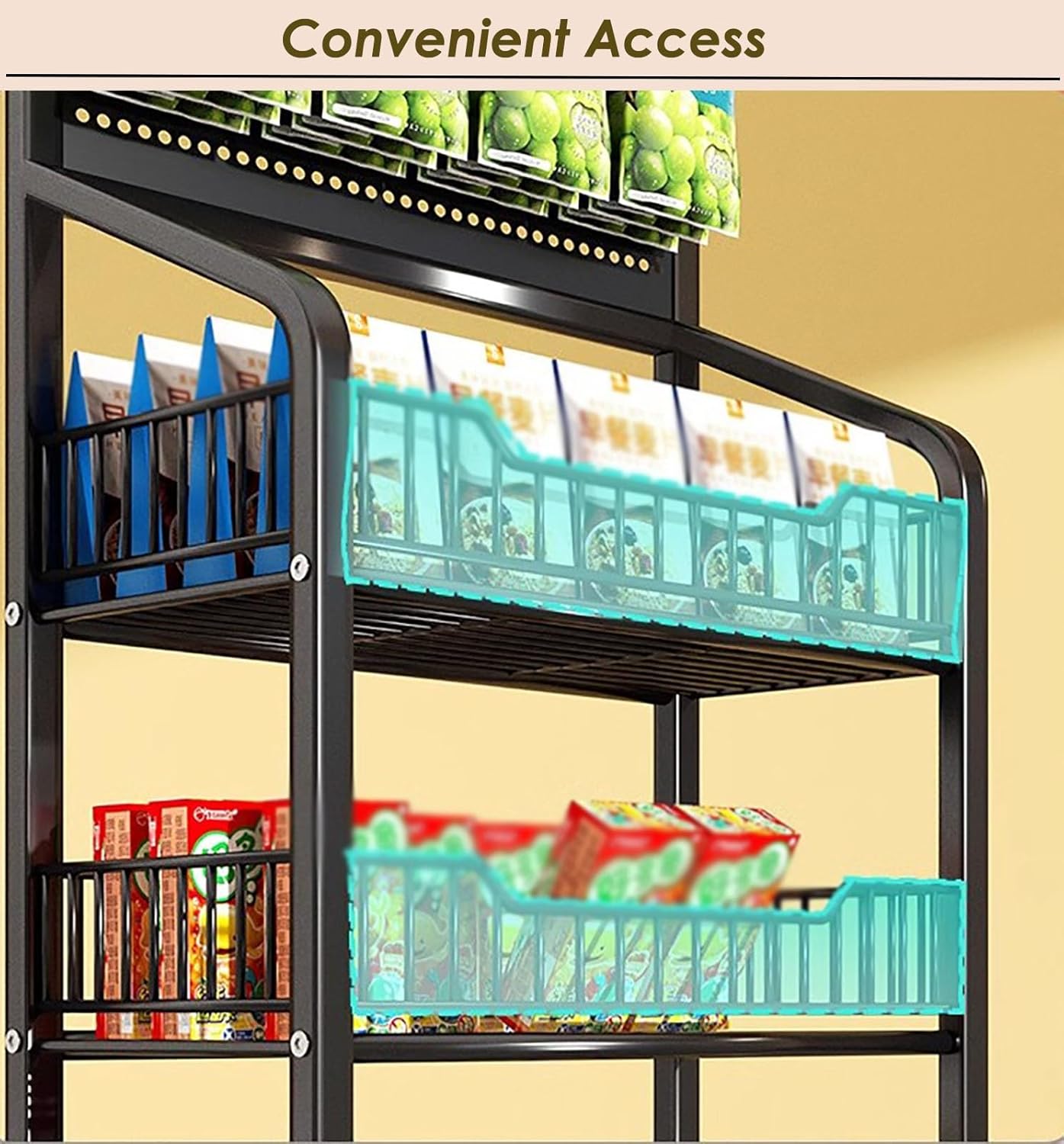 Large Capacity Storage: Available in 4-Tier or 5-Tier options, this rack provides ample space to stack snacks, drinks, toys, or food items, helping you declutter your space instantly.