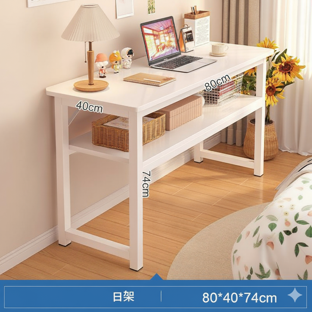 Designed with clean lines and a compact frame, this white desk fits seamlessly into small apartments, bedrooms, or office spaces. The integrated side shelves give you extra room for books, files, or decorative items, helping you stay organized while keeping your workspace clutter-free.