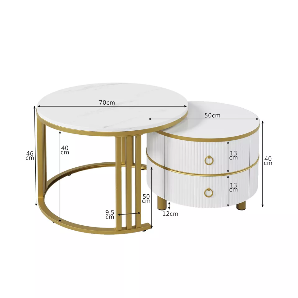 Add elegance and functionality to your living space with the Stacking Nesting Coffee Tables Set of 2. Designed with a modern touch, these round side tables feature built-in storage drawers that help you keep your essentials organized while enhancing your home décor.
