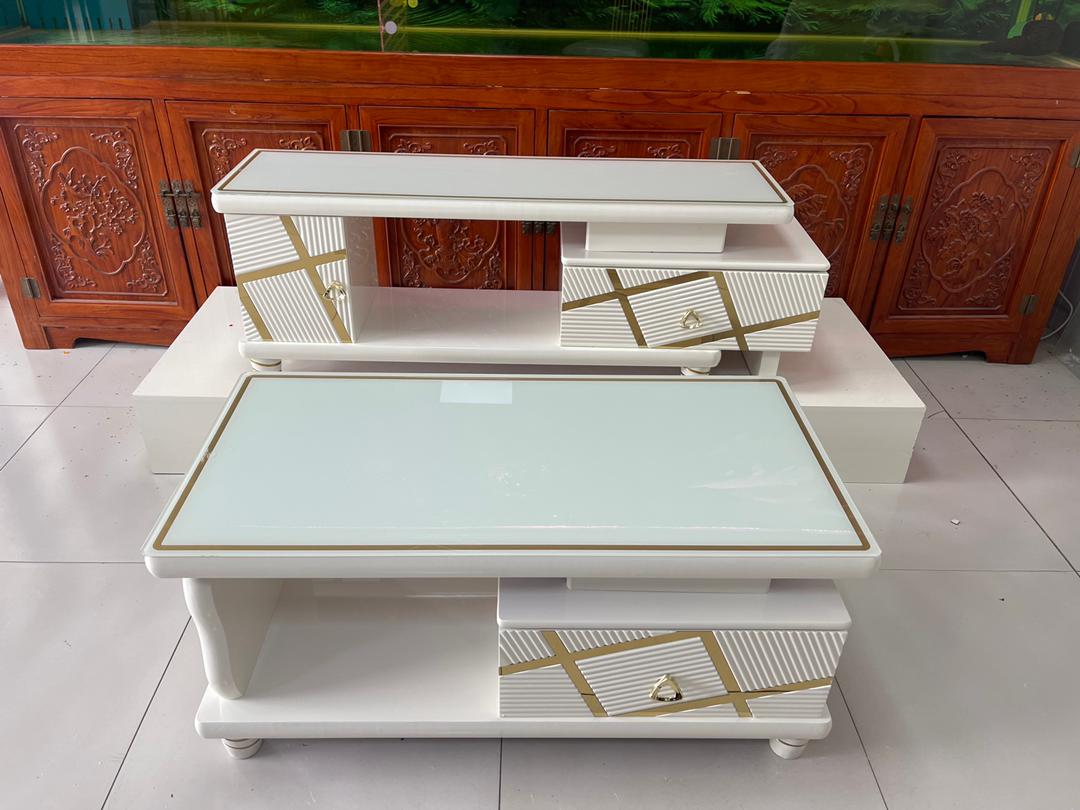 The TV stand includes ample storage with drawers and shelves, perfect for organizing media devices, books, or decorative items, while the coffee table offers generous surface space for beverages, snacks, or display pieces. Pair it with other living room furniture from Cheetah Cameroon to create a coordinated, stylish space.